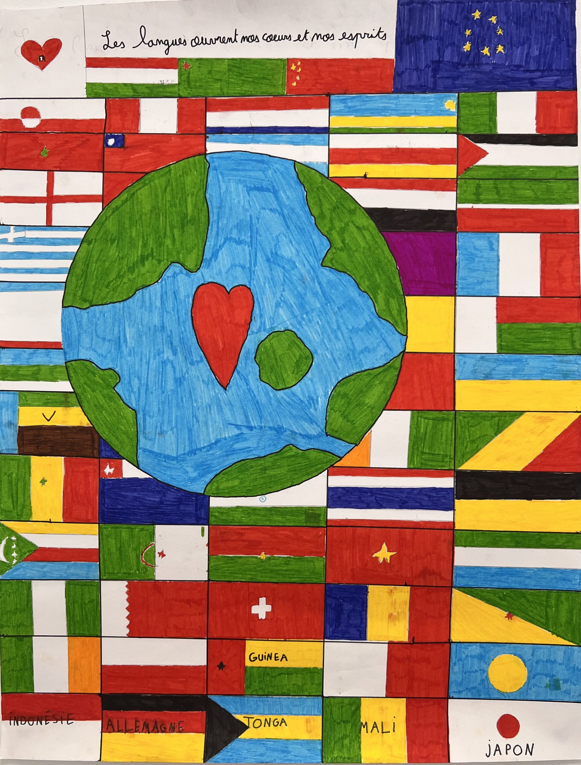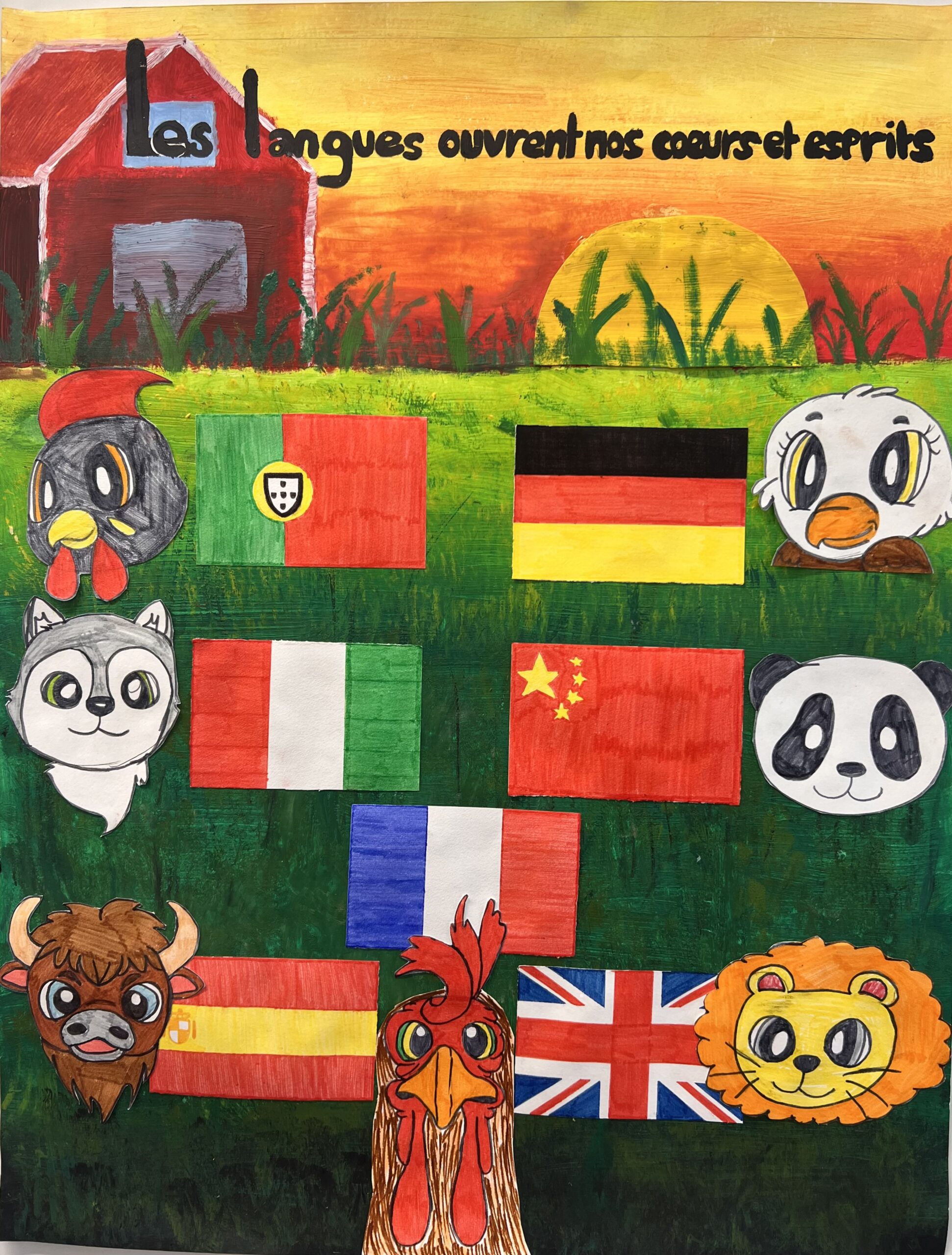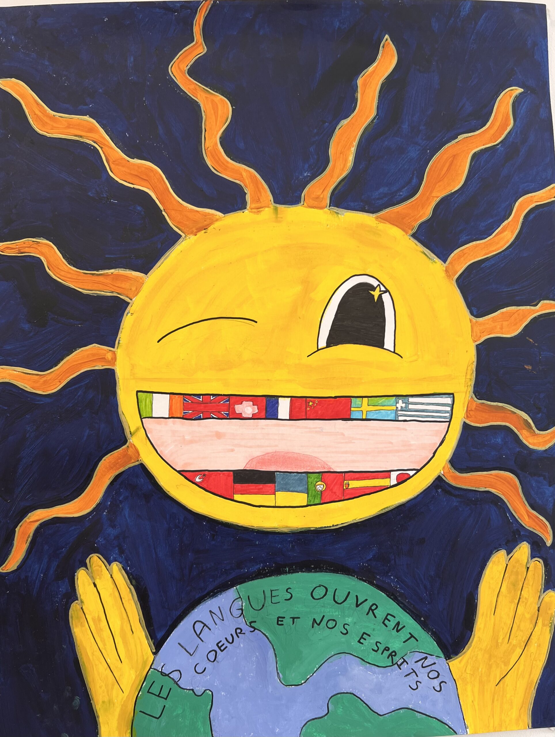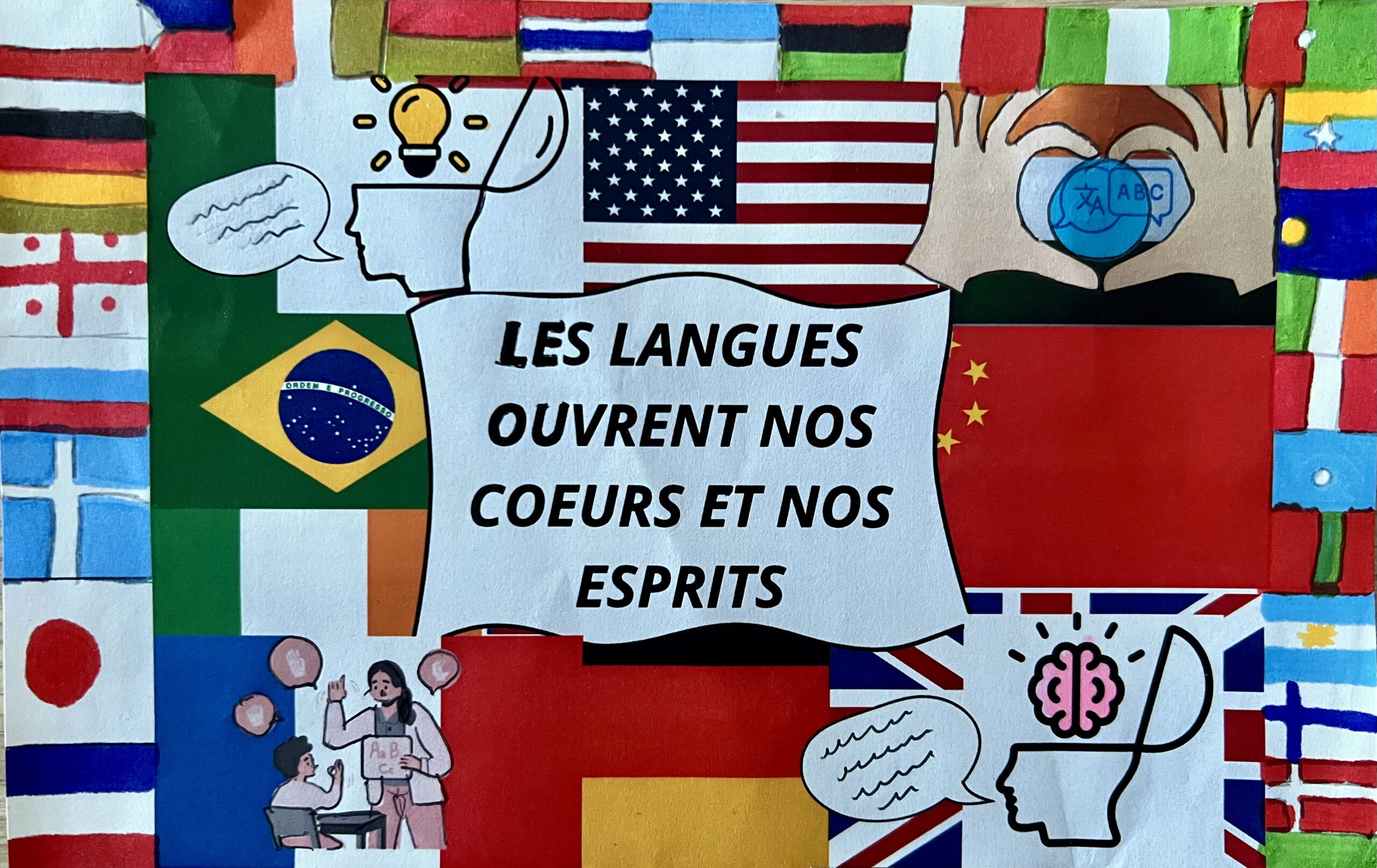 Ce slogan met en valeur le rôle des langues dans le développement à la fois intellectuel et émotionnel, ainsi que leur pouvoir de créer des liens, de favoriser l’échange et de renforcer l’empathie et le respect des différences. Les élèves pouvaient utiliser des symboles, des citations et des œuvres artistiques pour faire passer leur message.